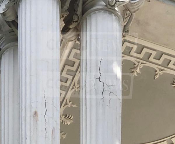 Ρωγμές παρατηρούνται και στις γύψινες κολόνες.