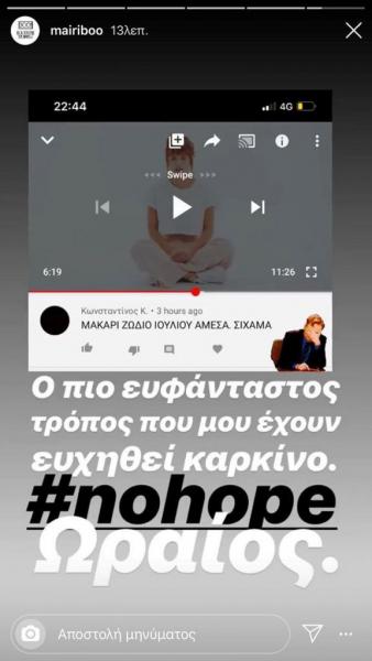«Ο πιο ευφάνταστος τρόπος που μου έχουν ευχηθεί να πάθω καρκίνο. No hope. Ωραίος».