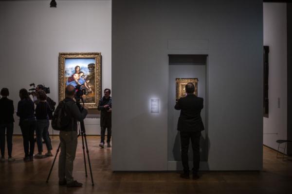 Η έκθεση είναι πλούσια σε ενδιαφέροντα σκίτσα, σχέδια και έγγραφα όπως και σε έργα άλλων καλλιτεχνών της Αναγέννησης, που τοποθετούν την έκθεση σε μια ταραγμένη εποχή, όπου ο ζωγράφος κυκλοφορεί μεταξύ Φλωρεντίας, Μιλάνου, Μάντοβας, Βενετίας, Ρώμης και Γαλλίας.
