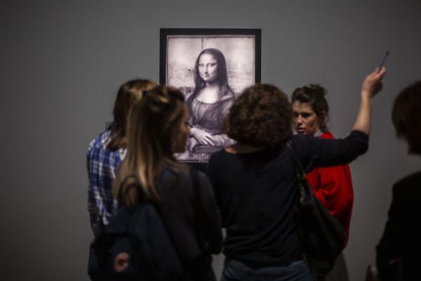 Η «Τζοκόντα», το διασημότερο έργο του και εμβληματικό του μουσείου του Λούβρου, δεν περιλαμβάνεται στην έκθεση αλλά ο επισκέπτης μπορεί να τη δει στη μόνιμη θέση της, λίγα μέτρα πιο μακριά.