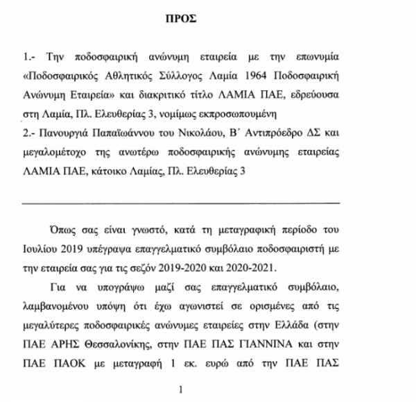 Εξώδικο στη Λαμία και τον Πανουργιά Παπαϊωάννου έστειλε ο Μάρκος Βελλίδης, ο οποίος κατηγορεί τον μεγαλομέτοχο της ομάδας πως του κάνει ζημιά στην επαγγελματική του καριέρα και καταγγέλλει πως τον απείλησε με... φουσκωτούς