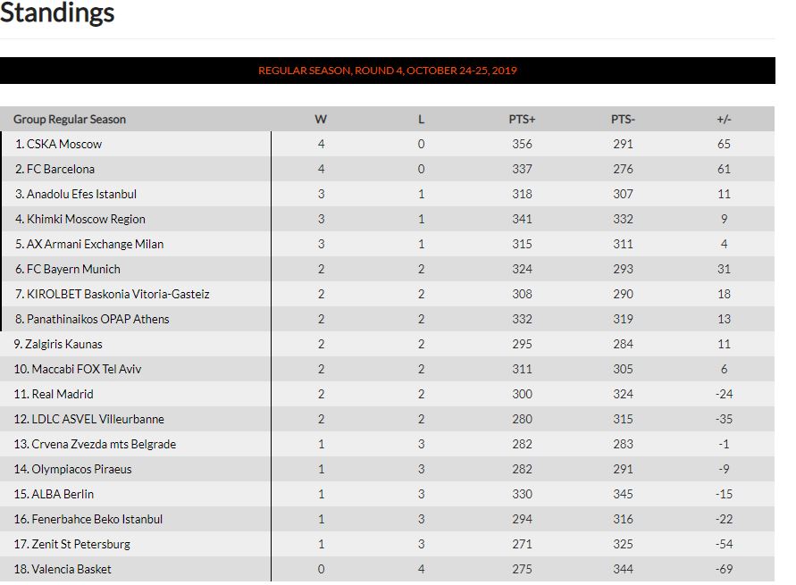 Η «ακτινογραφία» της 4ης αγωνιστικής της Ευρωλίγκας