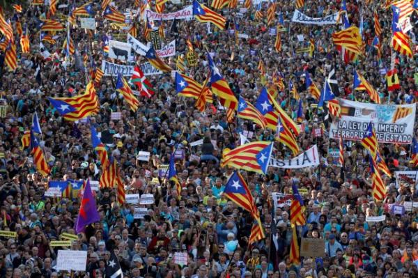 Νωρίτερα, εκατοντάδες χιλιάδες υπέρμαχοι της ανεξαρτησίας της Καταλονίας κατέκλυσαν το κέντρο της Βαρκελώνης, σε μια ακόμη ογκώδη διαδήλωση.