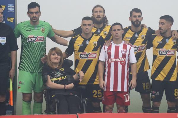 Ένα στιγμιότυπο που ξεπερνά ακόμα και το ίδιο το ποδόσφαιρο εκτυλίχθηκε στο «Γ. Καραϊσκάκης» πριν τη σέντρα του ντέρμπι ανάμεσα στον Ολυμπιακό και την ΑΕΚ.