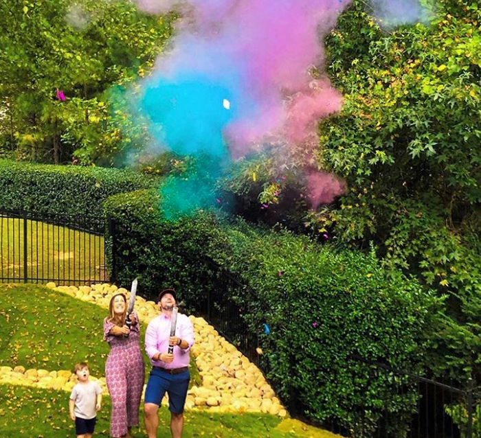 Ο εν λόγω αυτοσχέδιος μηχανισμός είχε κατασκευαστεί από το ζευγάρι, σύμφωνα με την Guardian, για να πετάξει στον αέρα χρωματιστή σκόνη, που θα αποκάλυπτε αν το νέο μέλος που έρχεται στην οικογένεια είναι κοριτσάκι ή αγοράκι.