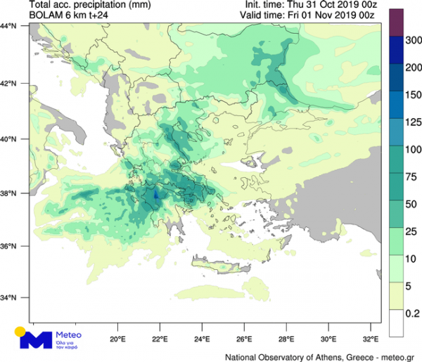 Για το υπόλοιπο της Πέμπτης (31/10), βροχές και καταιγίδες αναμένονται στο σύνολο σχεδόν της χώρας. Τα φαινόμενα θα εντοπίζονται αρχικά στα ηπειρωτικά και την Κρήτη, από το απόγευμα όμως θα επηρεάσουν κατά κύριο λόγο τα νότια και ανατολικά ηπειρωτικά, το Νότιο Ιόνιο και το Αιγαίο.