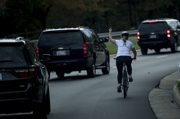 Η ποδηλάτισσα η οποία απολύθηκε επειδή ύψωσε το μεσαίο της δάχτυλο στον Ντόναλντ Τραμπ, ενώ την προσπερνούσε η αυτοκινητοπομπή του, εξεγέγη στη Βιρτζίνια.