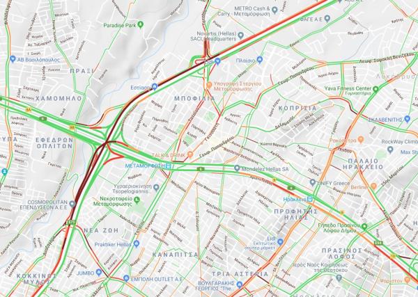 Κυκλοφοριακό χάος προκλήθηκε στο ρεύμα καθόδου του Κηφισού, στο ύψος της Λυκόβρυσης, μετά από καραμπόλα τριών αυτοκινήτων.
