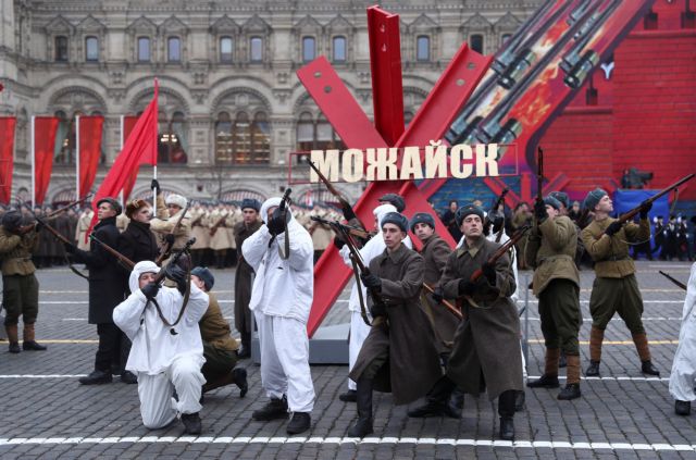 Περίπου 4000 Ρώσοι στρατιώτες παρουσίασαν ένα εντυπωσιακό θέαμα στην παρέλαση – αναπαράσταση που έγινε στην Κόκκινη Πλατεία της Μόσχας, προς τιμήν της παρέλασης της 7ης Νοεμβρίου του 1941, όταν 28.400 σοβιετικοί στρατιώτες αναχωρούσαν κατευθείαν από την Κόκκινη Πλατεία της πολιορκημένης Μόσχας με προορισμό τη γραμμή του μετώπου, για να αποτρέψουν την προέλαση των ναζιστικών στρατευμάτων.