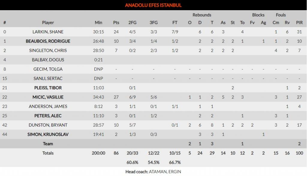 Ο Ολυμπιακός ήταν ανταγωνιστικός στο πρώτο δεκάλεπτο, αλλά χάθηκε στο δεύτερο. Μόλις ανέβασαν στροφές οι φιλοξενούμενοι βυθίστηκε και με τη διαφορά στο -18 (35-53) δεν μπορούσε παρά να κυνηγά μια αξιοπρεπή ήττα. Κατάφερε να μειώσει σε 61-67 στο ξεκίνημα της τέταρτης περιόδου, όμως Μίτσιτς και Λάρκιν του απαγόρευσα να διεκδικήσει κάτι περισσότερο. Άλλωστε, βάσει εικόνας, ομάδες όπως η Αναντολού Εφές δεν προσφέρονται για να κυνηγήσει νίκες ο Ολυμπιακός. Όχι όταν είναι σε αυτή την κατάσταση.