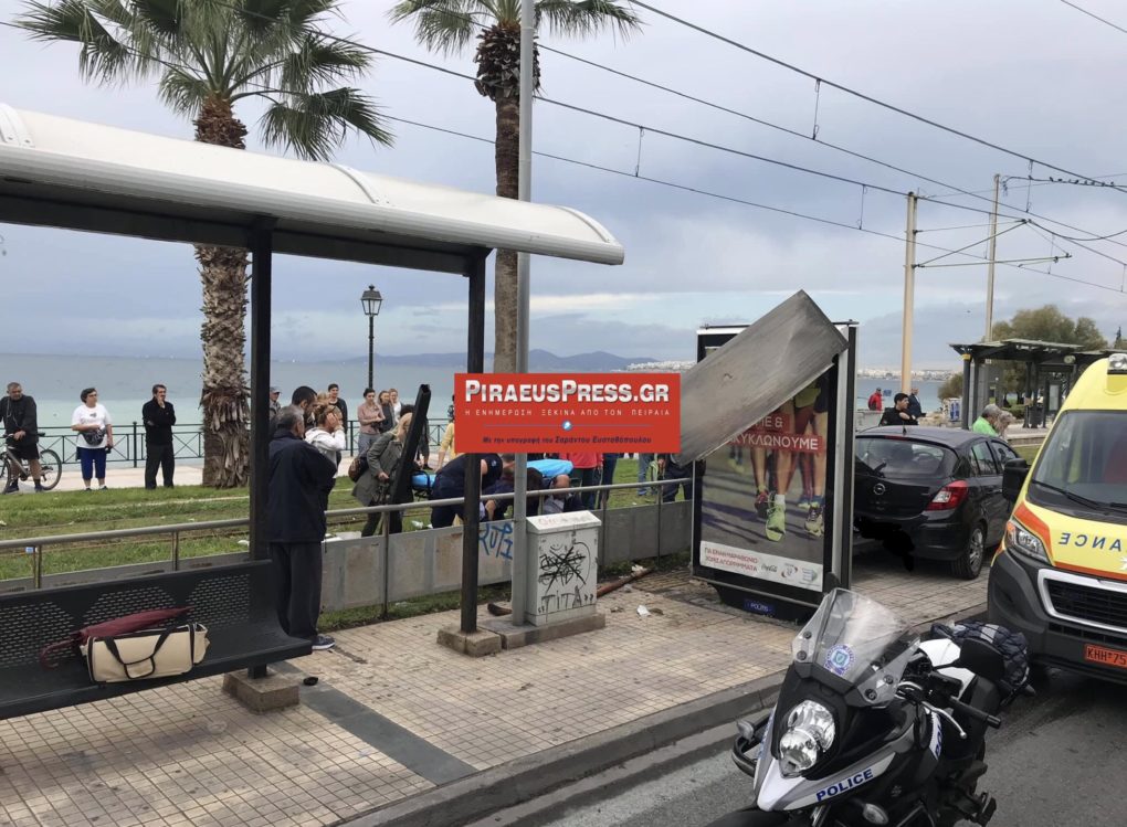 Στις φωτογραφίες που εξασφάλισε το Piraeus Press, την τρελή πορεία του αυτοκινήτου σταμάτησαν η στάση του λεωφορείου και τα κάγκελα του ΤΡΑΜ.