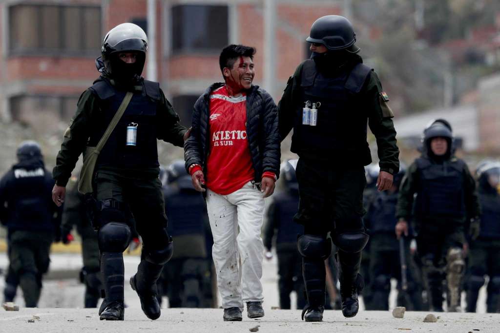 Αιμόφυρτος διαδηλωτής υπέρ του Μοράλες στα χέρια των αστυνομικών (AP)