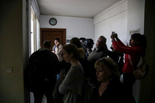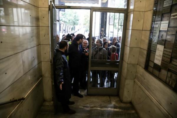 Στην είσοδο του κτηρίου υπάρχουν αστυνομικές δυνάμεις.