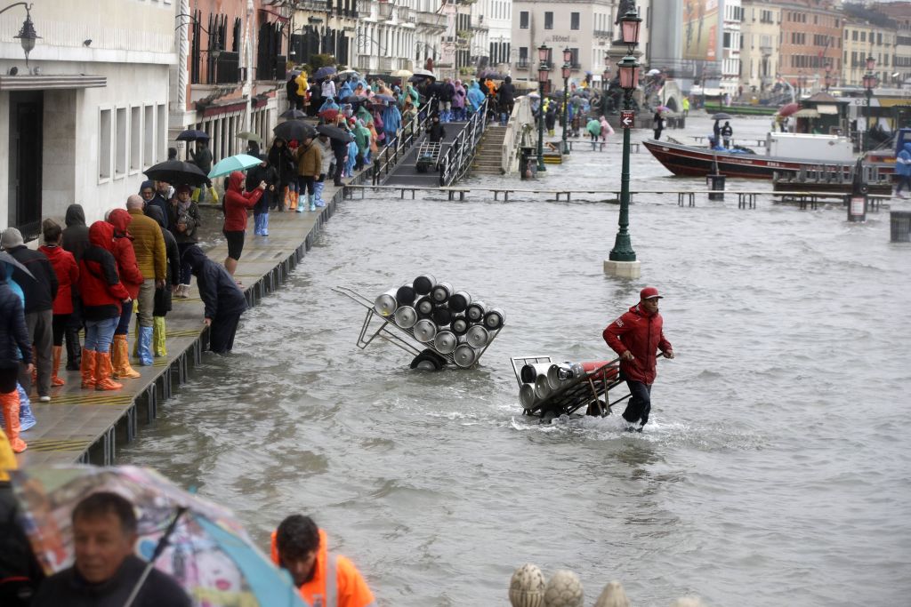 Venice residents and tourists waded through the floodwaters that have taken over much of the lagoon city. People were warned of the rising water with sirens and nursery schools were closed as a precaution. https://t.co/9Cg6PPseIa pic.twitter.com/Ndp4KcNCvJ