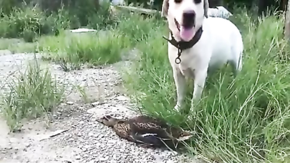 Ο λόγος για την πάπια του παρακάτω βίντεο, που, μπροστά στον κίνδυνο να πέσει στα δόντια ενός σκύλου, έκανε αυτό που ξέρει καλύτερα από κάθε τι άλλο: την… πάπια!