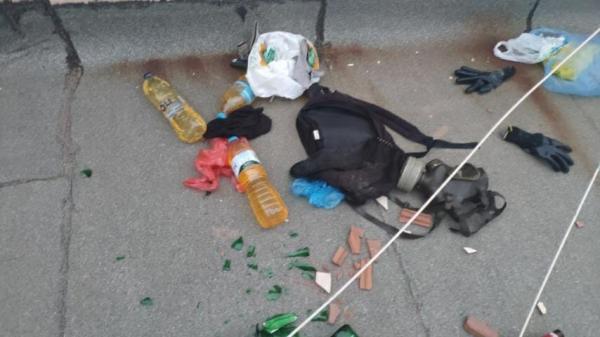 Από τα πρώτα στοιχεία που προκύπτουν από την αστυνομία, στην κατοχή των ατόμων βρέθηκαν πέτρες, βόμβες μολότοφ, αντιασφυξιογόνες μάσκες, γάντια και άλλα αντικείμενα.