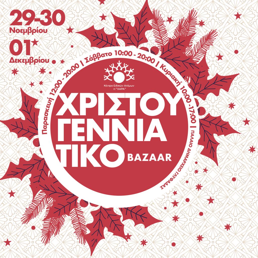Το Κέντρο Ειδικών Ατόμων η «Χαρά» προσκαλεί για ακόμη μια χρονιά μικρούς και μεγάλους να δώσουν το παρών στο Χριστουγεννιάτικο Bazaar που πραγματοποιείται με σκοπό την ενίσχυση του.