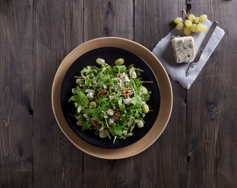 Σαλάτα με ρόκα, σταφύλι και μπλε τυρί