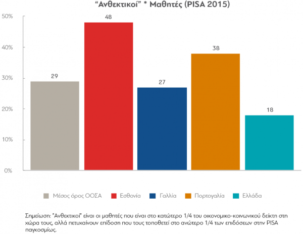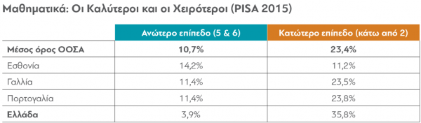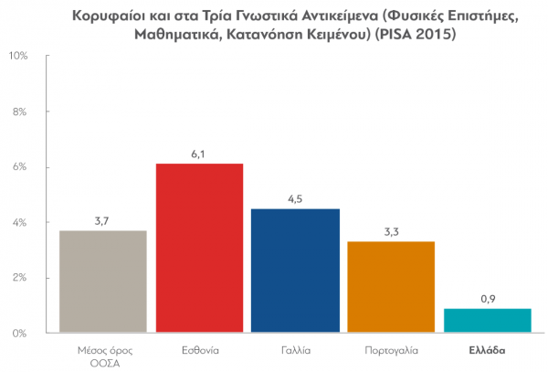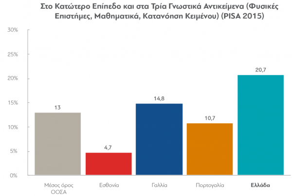 Από την άλλη, το ποσοστό των μαθητών πολύ χαμηλών επιδόσεων στη χώρα μας είναι πάρα πολύ υψηλό.