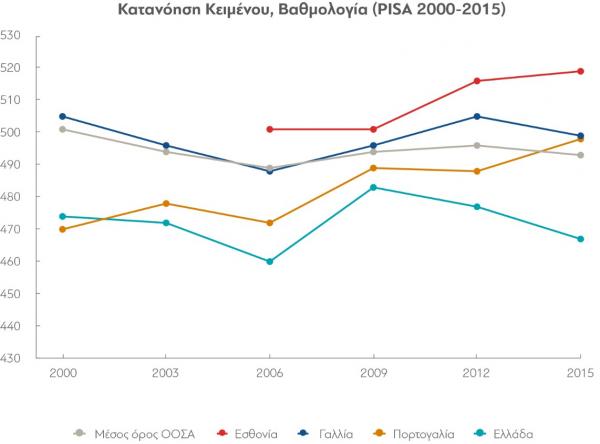 Τα ευρήματα για τους μαθητές της χώρας μας δεν είναι ενθαρρυντικά. Στην κατανόηση κειμένου ο μέσος όρος του ΟΟΣΑ ήταν επίσης 493 μονάδες. Οι Έλληνες μαθητές εκεί πήραν 467.