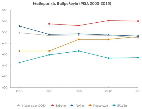 Ο μέσος όρος του ΟΟΣΑ στα μαθηματικά, δε, ήταν 490 μονάδες -οι Έλληνες στα μαθηματικά πήραν 454.