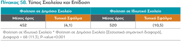 Ένα αναμενόμενο αποτέλεσμα έχει να κάνει με τη διαφορά στις επιδόσεις παιδιών που πηγαίνουν σε δημόσια και ιδιωτικά σχολεία.