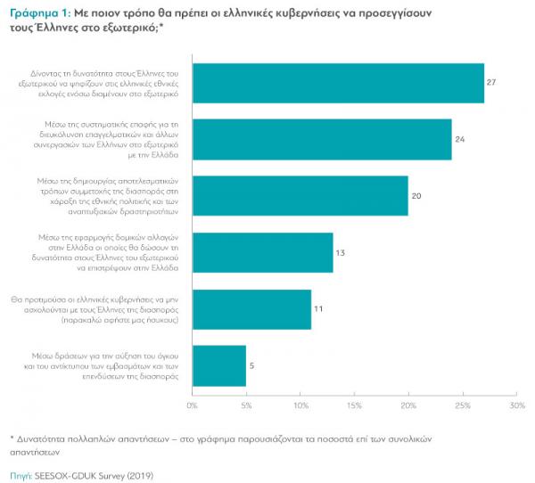 Αυτό προκύπτει από τη σχετική έρευνα που πραγματοποίησε το πρόγραμμα για την Ελληνική διασπορά του Πανεπιστημίου της Οξφόρδης σε συνεργασία με τον Οργανισμό Έρευνας και Ανάλυσης διαΝΕΟσις.