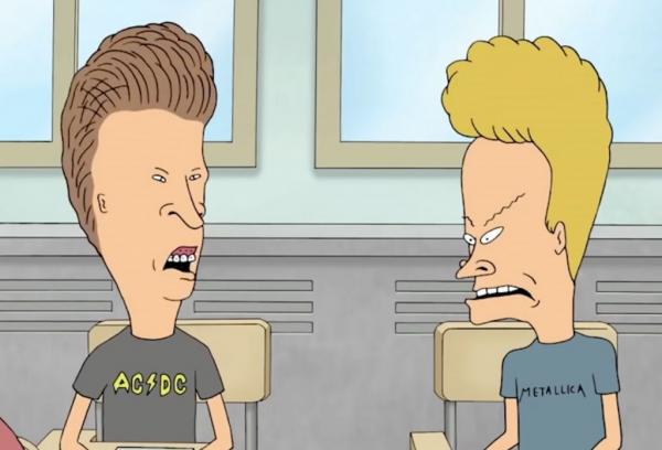 Ο Μπίβις φορά ένα μπλε μπλουζάκι των Μετάλικα και ο Μπατ-Χεντ ένα γκρι των AC/DC.