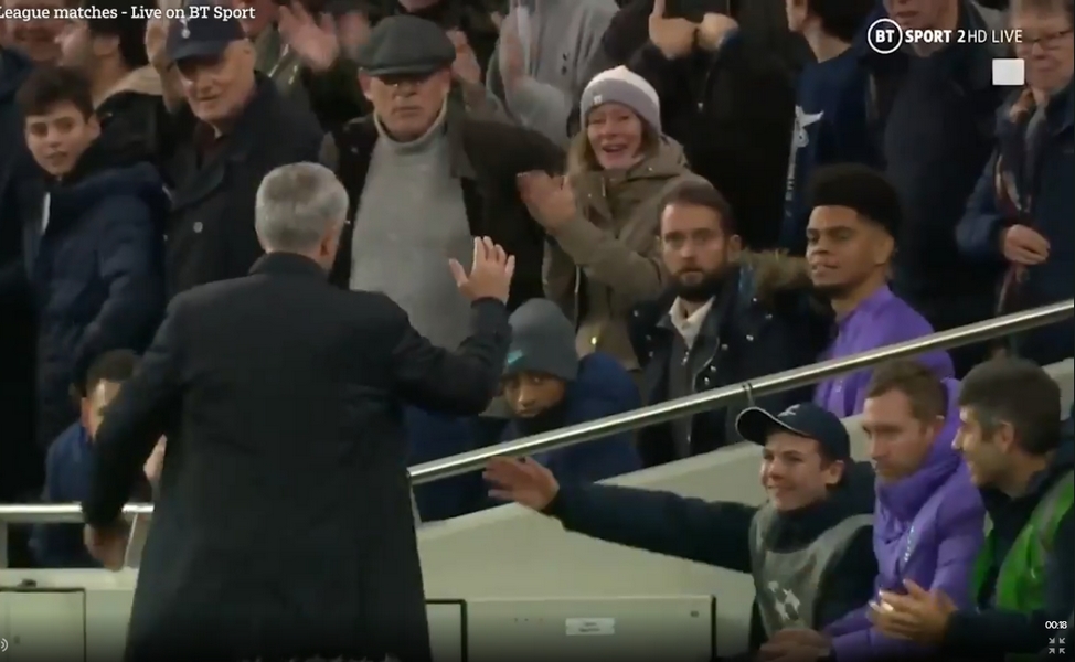 Η πρώτη έκπληξη σημειώθηκε δευτερόλεπτα μετά το γκολ, όταν τον πλησίασε για high-five ο Ζοσέ Μουρίνιο.