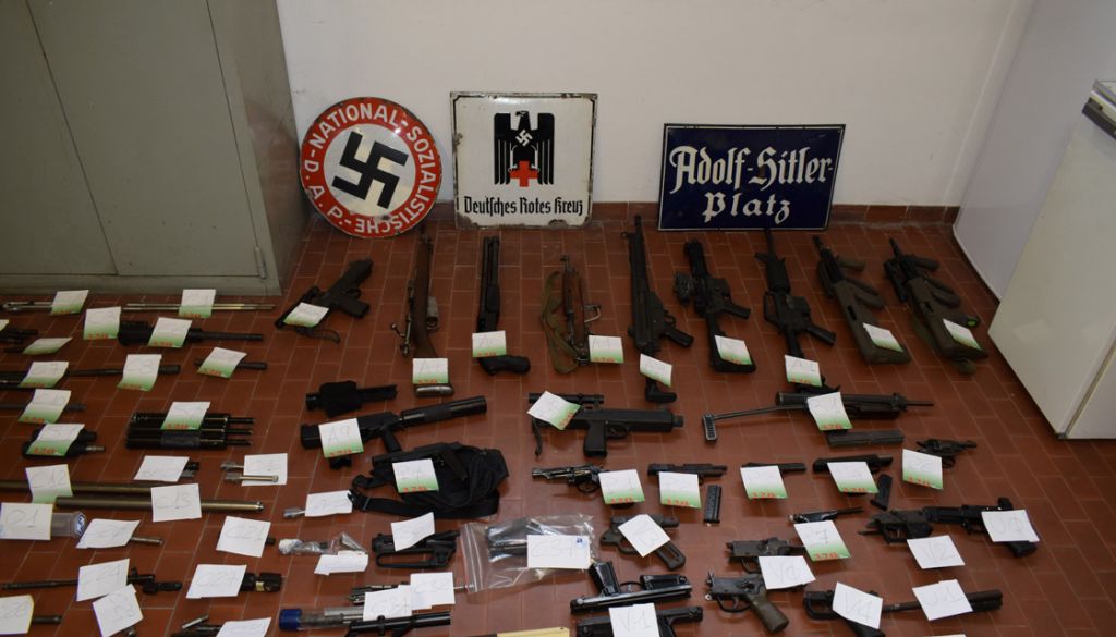 Οι Αρχές έχουν ξεκινήσει έρευνες στην κατοικία της και έχουν ανακαλυφθεί στο κατασχεθέν υλικό επιγραφές με τη σβάστικα, με αντισημιτικά συνθήματα και ναζιστικές σημαίες.