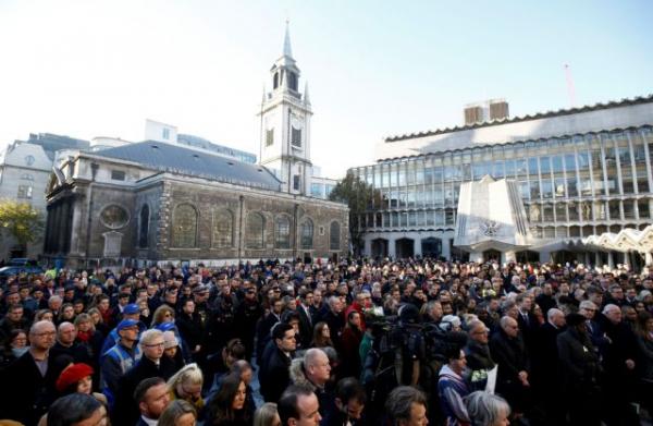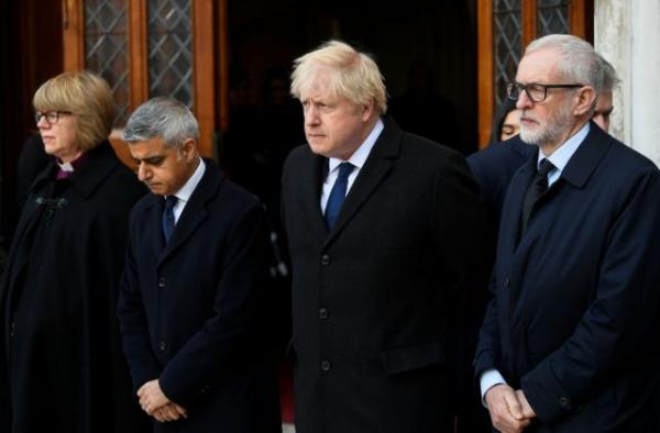 Ο Τζόνσον και ο Κόρμπιν ήταν και οι δύο παρόντες στην εκδήλωση στην Γκίλντχολ Γιαρντ, στην καρδιά του Λονδίνου, που πραγματοποιήθηκε για να τιμηθούν οι νεκροί, οι τραυματίες, οι υπηρεσίες έκτακτης ανάγκης και οι απλοί άνθρωποι οι οποίοι επενέβησαν.
