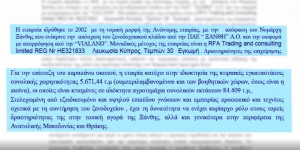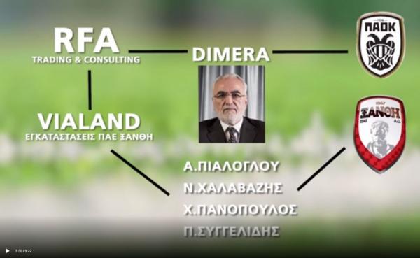 According to the investigative report by One Channel, in 2018 Ioannis Kalpazidis, the nephew of Ivan Savvidis from Kilkis, bought the facilities of Xanthi FC through the Cyprus based RFA company. This company bought the Vialand company, which belonged to Panopoulos and Syggelidis.