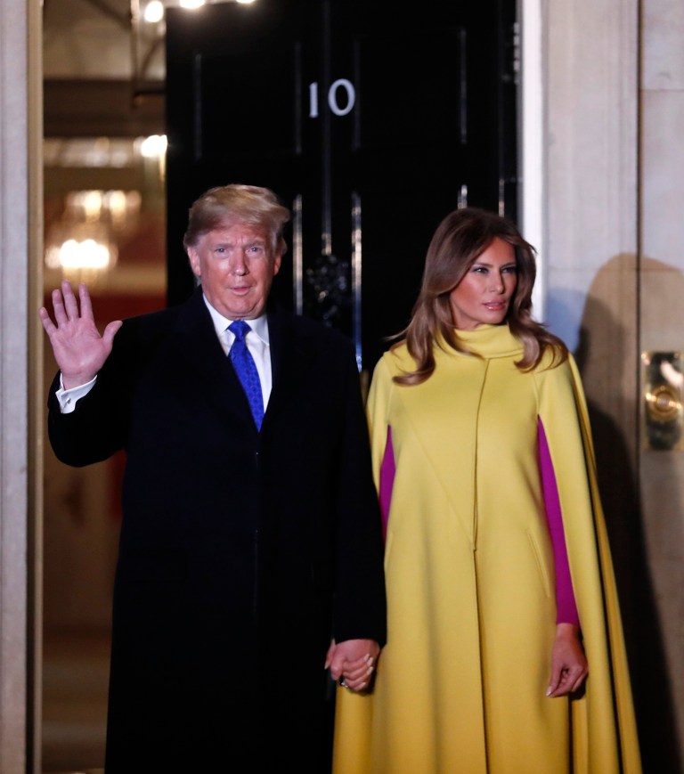 Η Πρώτη Κυρία των ΗΠΑ εμφανίστηκε με εντυπωσιακό κίτρινο μαντό Valentino που συνδύασε με φούξια γόβες, ενώ ο αμερικανός πρόεδρος φορούσε σκούρο σακάκι με μπλε γραβάτα.