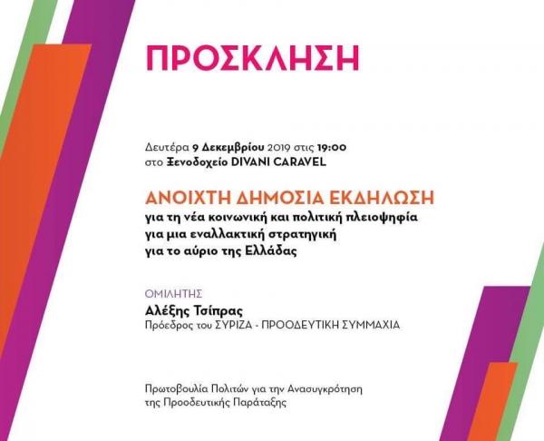 Και θα μιλήσει και για την εναλλακτική πρόταση για το μέλλον της Ελλάδας, μόλις λίγους μήνες αφ’ ότου η εναλλακτική του ΣΥΡΙΖΑ ηττήθηκε κατά κράτος.