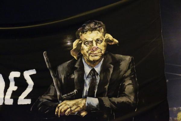 Κατά την πορεία για τη δολοφονία Γρηγορόπουλου, στη συμβολή των οδών Σταδίου και Κολοκοτρώνη, άγνωστοι έγραψαν σύνθημα κατά του υπουργού Προστασίας του Πολίτη, Μιχάλη Χρυσοχοϊδη