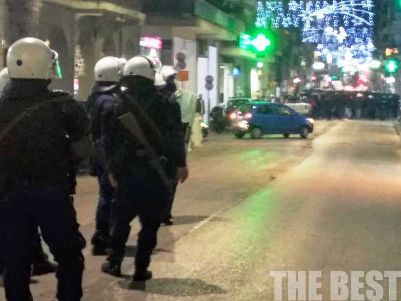 «Βροχή» από μολότοφ και φωτοβολίδες πέφτουν αυτή την ώρα στο κέντρο της Πάτρας στην οδό Κορίνιθου, μετά το τέλος της πορείας στη μνήμη του Αλέξανδρου Γρηγορόπουλου.