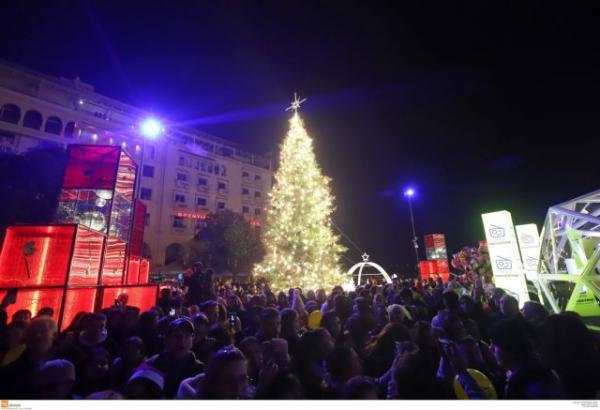Θεσσαλονίκη : Φωταγωγήθηκε το χριστουγεννιάτικο δέντρο στην Αριστοτέλους – Η έκπληξη του δημάρχου