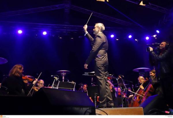 Για λίγα λεπτά διηύθυνε την Συμφωνική Ορχήστρα του δήμου και μετά από λίγο στη σκηνή ανέβηκε η Άλκηστις Πρωτοψάλτη, η οποία αυτή την ώρα διασκεδάζει τους εκατοντάδες πολίτες που βρέθηκαν στην πλατεία Αριστοτέλους.