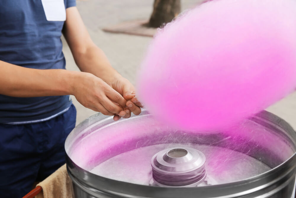 Το «μαλλί της γριάς» έγινε προσιτό σε κάθε βαλάντιο, όταν πέρασε στην άλλη όχθη του Ατλαντικού. Στο Νάσβιλ του Τενεσί, ο οδοντίατρος Γουίλιαμ Μόρισον και ο ζαχαροπλάστης Τζον Γουόρτον κατασκεύασαν, το 1897, το πρώτο μηχάνημα για την παρασκευή του. Το παρουσίασαν με μεγάλη επιτυχία στην Διεθνή Έκθεση του Αγίου Λουδοβίκου (Σεντ Λούις), το 1904, τμήμα της οποίας ήταν και οι Ολυμπιακοί Αγώνες εκείνης της χρονιάς. Η πρώτη αυτόματη μηχανή κατασκευάστηκε το 1972.