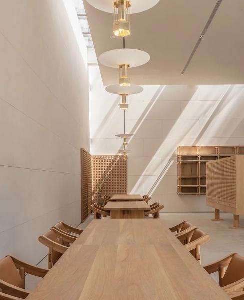 Το εσωτερικό του «Tea Museum» χαρακτηρίζουν ζεστά, φυσικά και απλά υλικά, για να διατηρείται μια αποστασιοποίηση από τον κόσμο έξω.