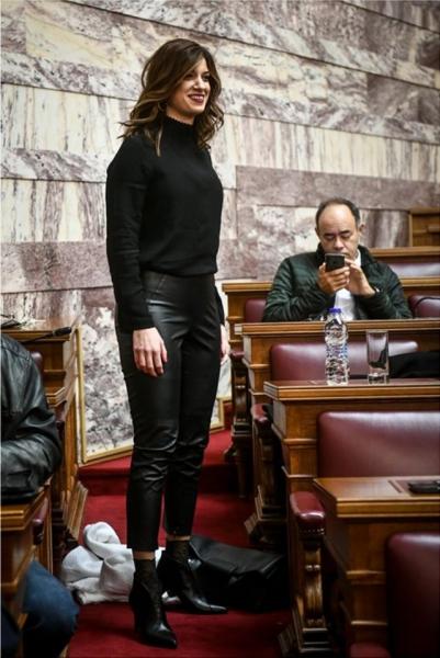 Η νεαρή βουλευτής εντυπωσίασε συναδέλφους και φωτογράφους με ένα total black ντύσιμο: