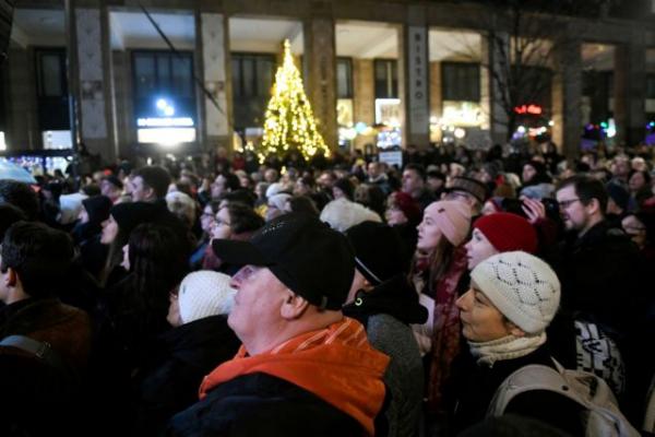 Σε μια κρύα και βροχερή μέρα, περίπου 1.000 με 2.000 άνθρωποι διαδήλωσαν σήμερα στο κέντρο της Βουδαπέστης σε ένδειξη διαμαρτυρίας κατά του νομοσχεδίου, με κάποια από τα πλακάτ των διαδηλωτών να γράφουν : «Γουρούνια, κάτω τα χέρια σας από το θέατρο».