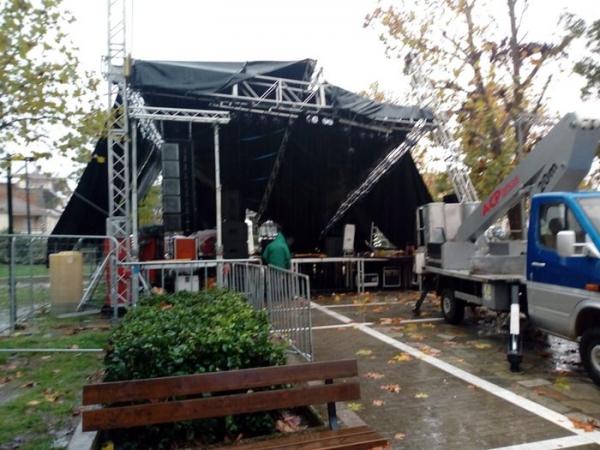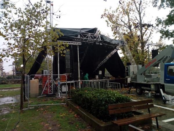 Κατέρρευσε τα ξημερώματα λόγω των ισχυρών ανέμων και της βροχής η κεντρική σκηνή στο Πάρκο των Ευχών στο Αλκαζάρ της Λάρισας.