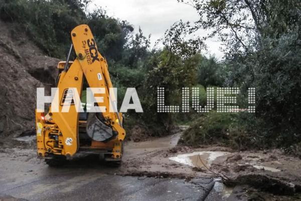 Τα ξημερώματα του Σαββάτου έπληξε με σφοδρότητα ο «Ετεοκλής» την Ηλεία, με αποτέλεσμα να προκληθούν κατολισθήσεις και να κοπεί στα δύο ο δρόμος που οδηγεί από το Καράτουλα στο Μουζάκι.