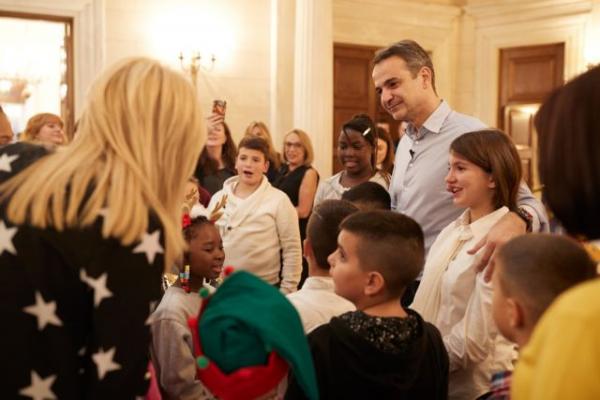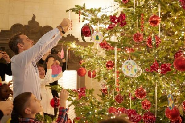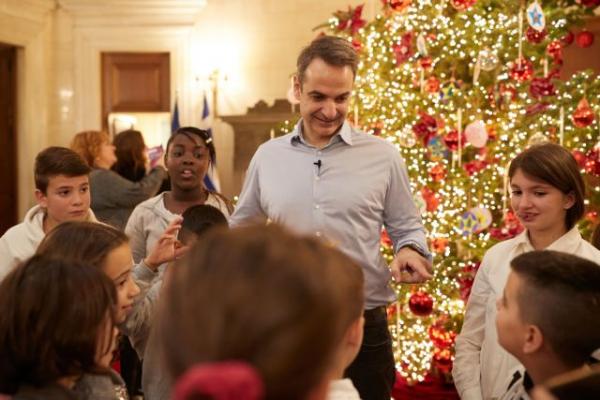 Κυριάκος και Μαρέβα στόλισαν με παιδιά της «Κιβωτού» το δένδρο στο Μαξίμου