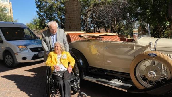 Για να γιορτάσουν την 80η επέτειο γάμου τους, ο σύζυγος περίμενε τη σύζυγο με ένα μπουκέτο λουλούδια και ένα Ford Roadster του 1920 – όπως ακριβώς στο πρώτο τους ραντεβού.
