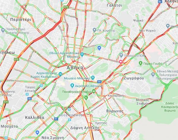 Κίνηση : «Κόλαση» οι δρόμοι της Αθήνας – Πού εντοπίζονται προβλήματα
