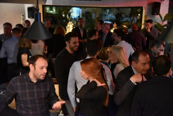 Οι οικοδεσπότες υποδέχθηκαν τους καλεσμένους τους σε γνωστό μπαρ του Παγκρατίου, απ΄όπου δεν έλειψε η πρόεδρος του Κινήματος Αλλαγής, Φώφη Γεννηματά, η οποία ήταν χαμογελαστή και ευδιάθετη, ενδεχομένως και λόγω της ανόδου που παρουσιάζει το κόμμα της στις τελευταίες δημοσκοπήσεις.