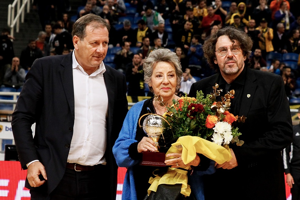 O άνθρωπος που προσέφερε τα μέγιστα στην Ένωση και άφησε το αποτύπωμά του και στο τμήμα μπάσκετ με την «Βασίλισσα» να του αφιερώνει την αναμέτρηση. Πριν ξεκινήσει λοιπόν το ματς ο πρόεδρος της ΑΕΚ, ο Μάκης Αγγελόπουλος έδωσε τιμητική πλακέτα και μια ανθοδέσμη στη σύζυγό του, Νόνη.
