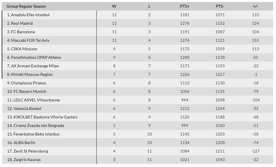 Η 15η αγωνιστική ξεκίνησε με τον Παναθηναϊκό να χάνει την ευκαιρία να πιάσει την Μακάμπι και έμεινε στην έκτη θέση και το 9-6. Μεγάλες νίκες για Ζενίτ, Αρμάνι και Ρεάλ Μαδρίτης